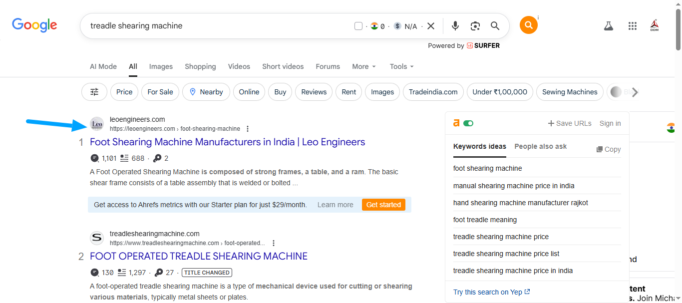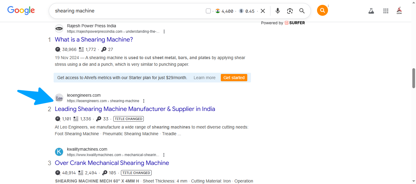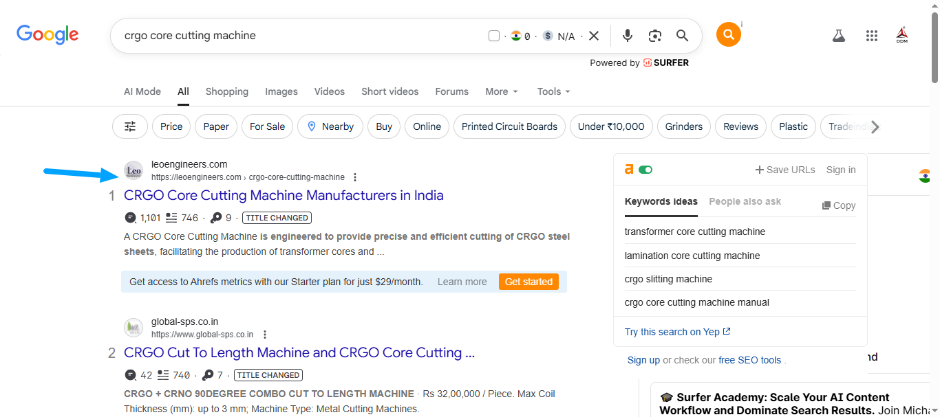 | Visibility | Top 10 Keyword Rankings | 20–25 Targeted Keywords (e.g., Shearing Machine Price) |