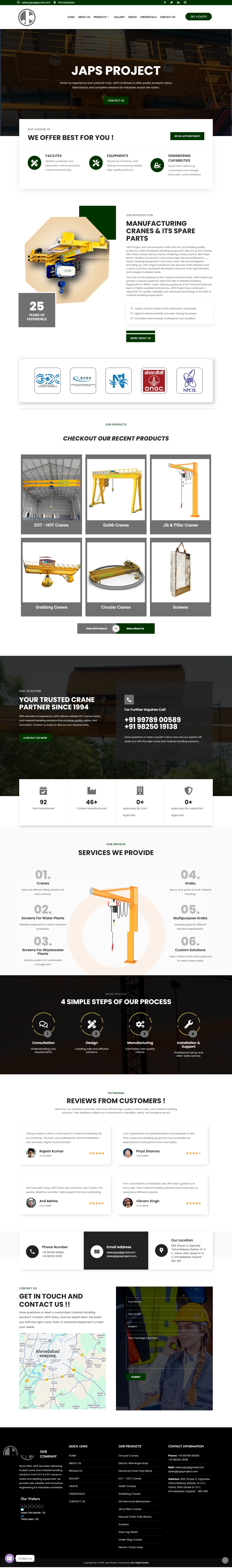 At Dev Digital Media, we help businesses like Japs Project go digital—fast. This project involved building a complete website for a Crane manufacturing company, designed to attract parents, retailers, and distributors alike. And yes, we did it in just 1 week!