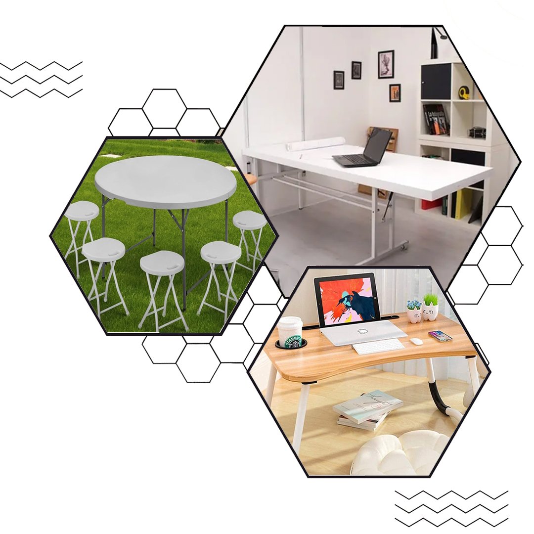 Folding tables provide space efficiency, easy storage, and portability, making them ideal for homes, offices, and events.